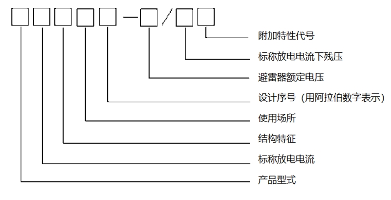 产品型式:Y—表示瓷套式金属氧化物避雷器