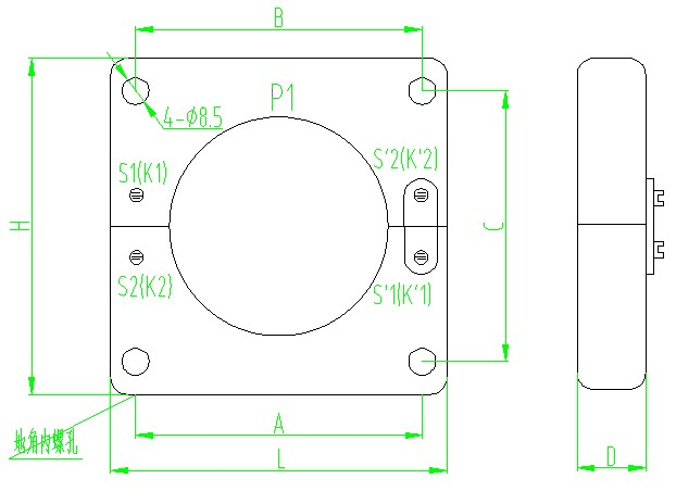 注:Φ8.5四孔为通孔,B,C为四孔间尺寸,可做水平安装。